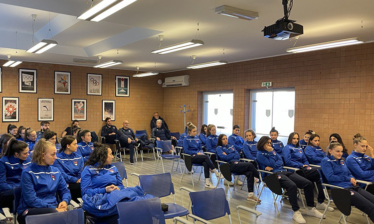 Nell’occasione, il Capodelegazione Santino Lo Presti, ha portato il suo "in bocca al lupo" alle giocatrici, insieme al Coordinatore Tecnico Massimo Piscedda e al Segretario del Dipartimento Calcio femminile Patrizia Cottini.