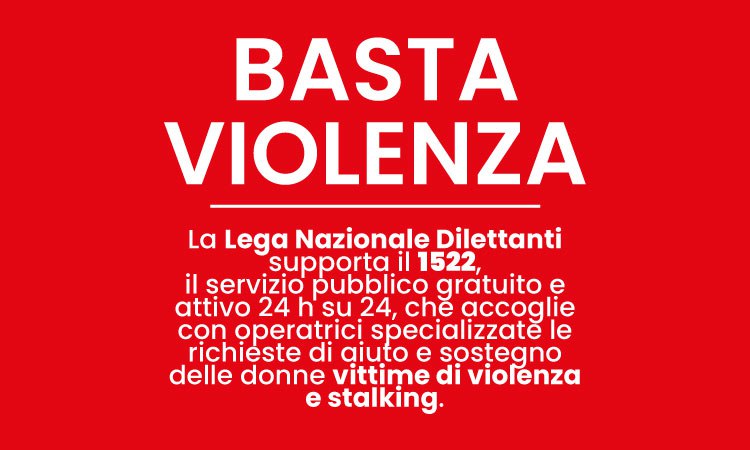La Lega Nazionale Dilettanti sostiene il servizio pubblico gratuito - il 1522, attivo 24 h su 24 - che accoglie con operatrici specializzate le richieste di aiuto a sostegno delle donne vittime di violenza e stalking.